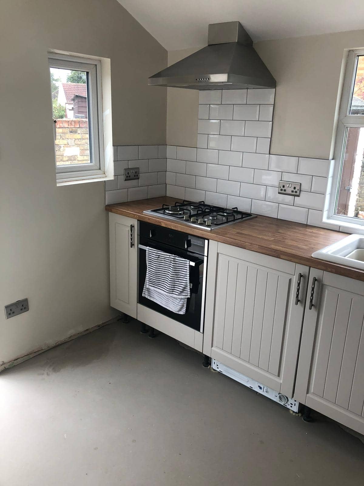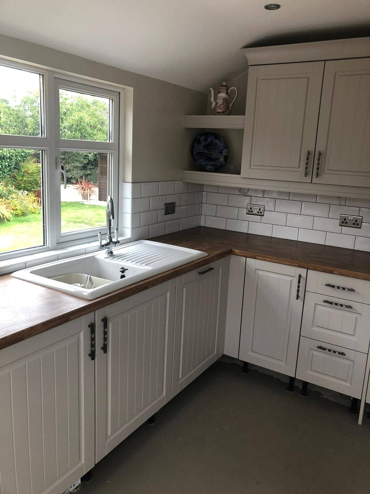 We offer an all inclusive kitchen fitting service, from designing and planning your layout to choosing or designing your perfect kitchen space. We have historically designed and installed a bespoke fitted kitchen using beautiful reclaimed quality items. See our gallery and testimonials page for more details. We also offer both wall and floor tiling to create a beautiful finish.